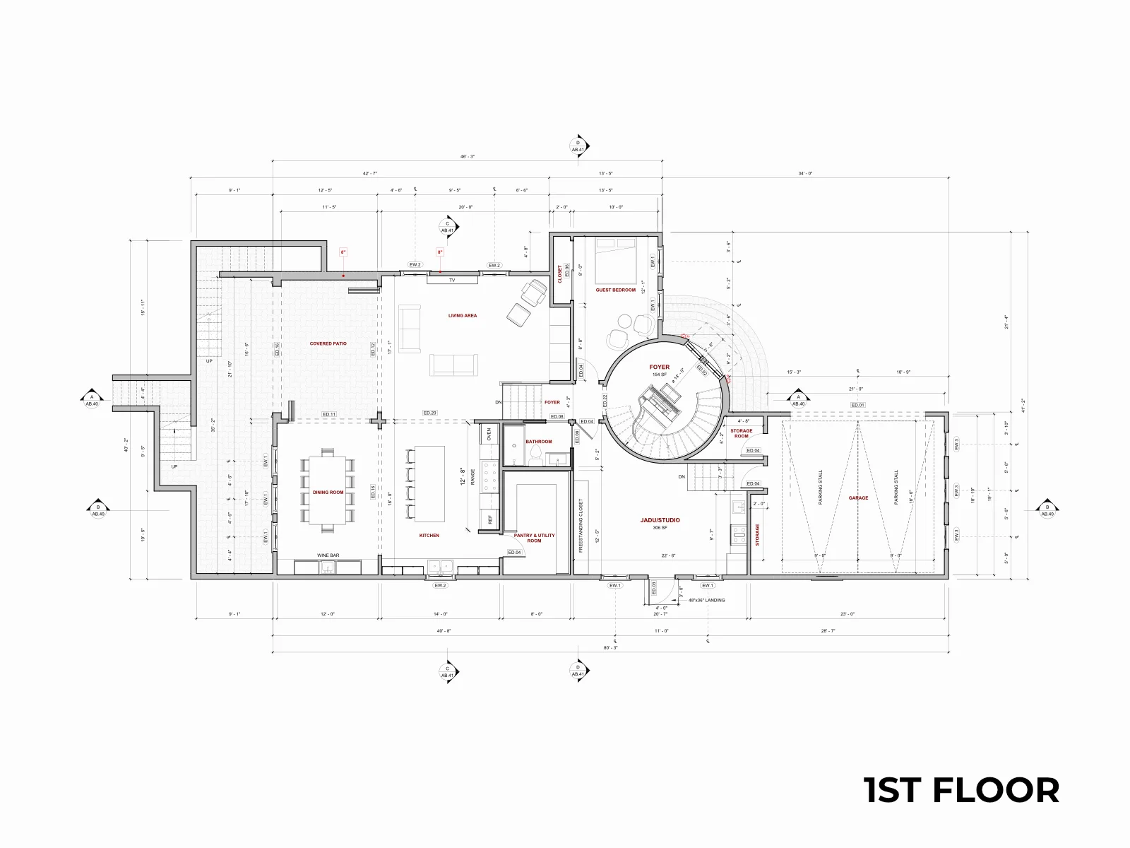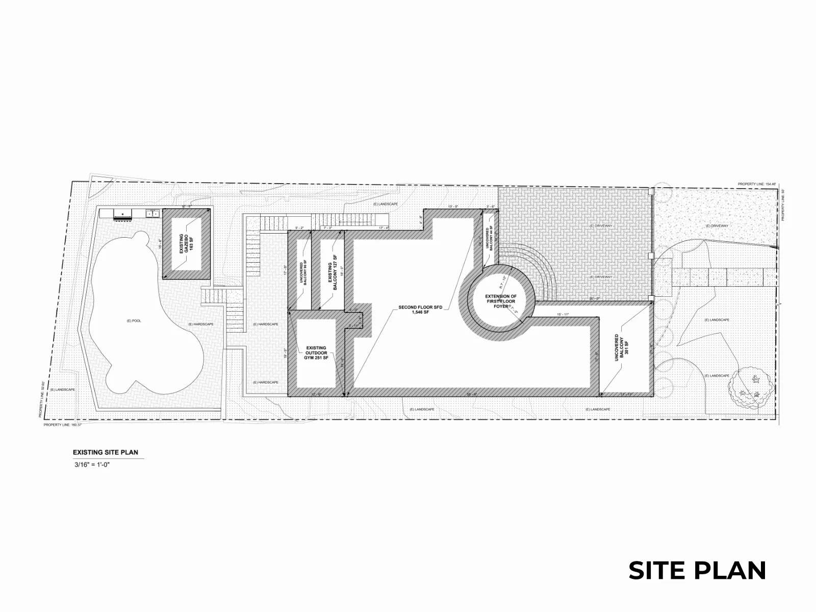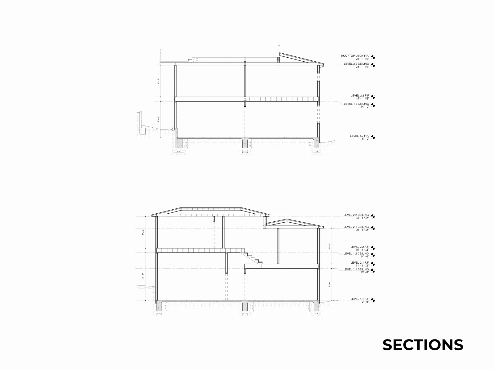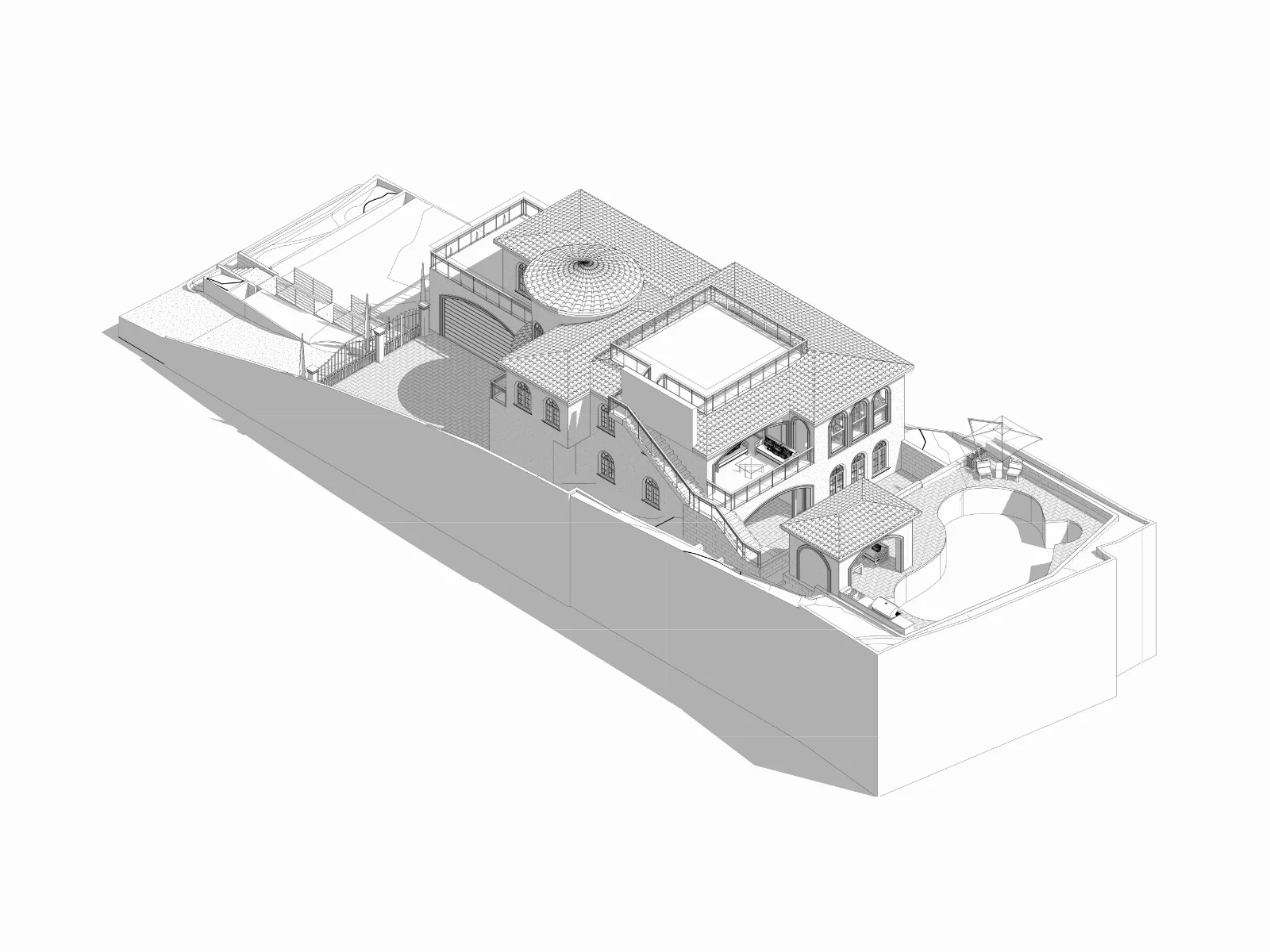 A 4,000+ SF hillside estate, fully documented. Two stories, three split levels, a circular rotunda, JADU studio, and every accessory structure captured in a complete as-built drawing set.